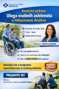 Zdravstveno učilište Medical poziva vas na besplatni webinar: Uloga osobnih asistenata u inkluzivnom društvu
